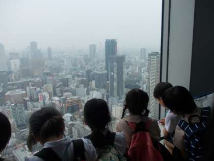 環状線1周の後は梅田スカイビルの展望台から大阪市内を見渡しました。今日の社会見学で学んだことをいかし、社会科の学習を進めていきます。