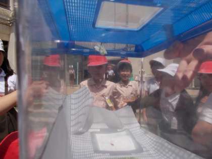 以前に観察したモンシロチョウのさなぎが成虫になり、子どもたちの大歓声とともにとびたちました。