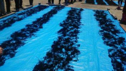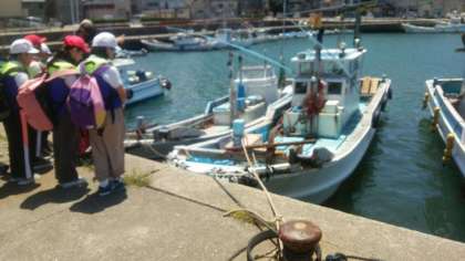 菅島に到着しました。漁船、干しているひじきなどをみながら、しろんご浜へむかって歩いています。