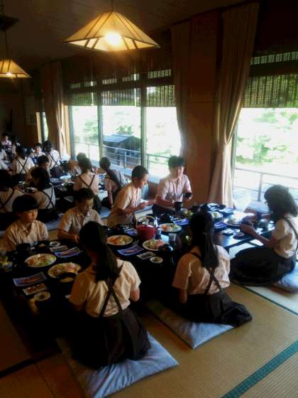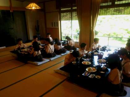朝食です。「いただきます」とともに、箸がすすんでいます。