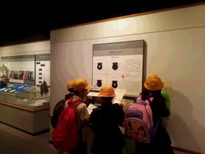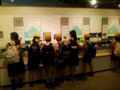 クイズラリーに協力して取り組んでいます。お土産がもらえるようで、がんばっています。
