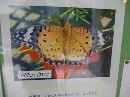 さなぎは、金メラがかわいくて、成虫は、ツマ(すそ)が、クロで、ヒョウがらのモンのチョウになります。