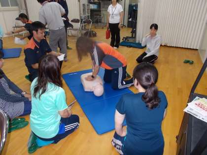 北消防署の方にお越しいただき、教職員対象に救命救急講習会を行いました。毎年、プールでの学習が始まる前のこの時期に実施しています。緊急事態に備え、胸骨圧迫や人工呼吸、周囲の方への連絡のしかた、AEDの使い方などを学び、練習しました。消防署の方からは「勇気ある一歩でいのちを救うことができる。」とお話しいただきました。