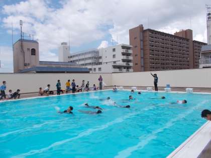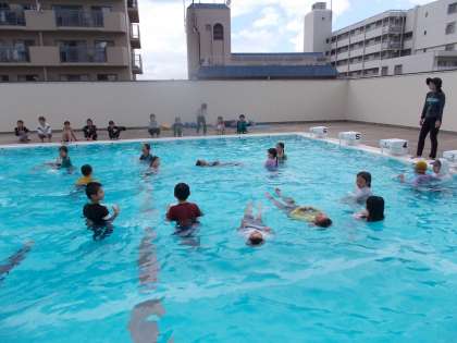 プールでの学習が始まり、一週間がたちました。本日は、万が一の水難事故に備え、着衣時の泳ぎ方や水の感覚をつかむために、着衣泳を行いました。普段の水泳の学習とは違い、着衣時は動きづらいことを体験しました。また、背浮きや、ペットボトルを使って浮く練習をしました。これから水に触れる機会が多くなる時季です。安全に過ごしてほしいです。