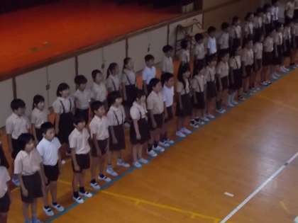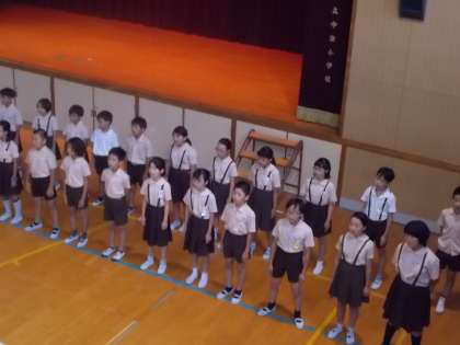 今日は音楽集会でした。今月の担当は5年生、曲は「COSMOS]でした。これまでの練習で美しい歌声が聴こえていましたが、今日の集会でも練習の成果を発揮し、美しい歌声が講堂に響きました。5年生のあとの全校での合唱では、全校児童が一つになり歌うことができました。音楽の素晴らしさを感じることができた音楽集会でした。