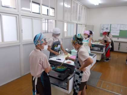 昨日に続き、6年1組が調理実習を行いました。手際よく調理をすすめることができました。少し塩辛い班もあったようですが、味付けの大切さをかみしめながら試食する姿がほほえましかったです。さすが6年生。片付けも素早くできました。