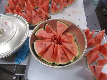 すいかは、大阪市の給食では年に1度の登場だそうです。