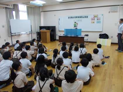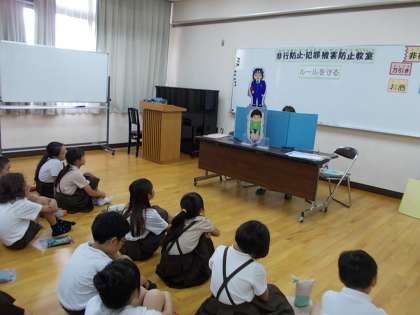 5年生が非行防止教室を行いました。「ルールを守ること」「思いやり」「断る勇気」の大切さを学びました。また、ペープサートをみて、万引きをしてしまうとどうなるかということを学びました。