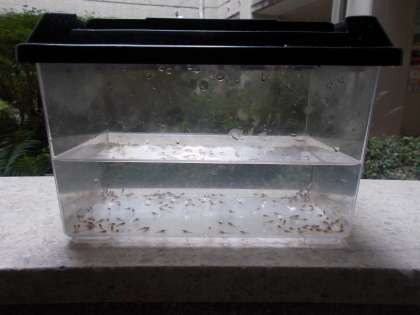 2年生が飼育しているザリガニにはとてもたくさんの赤ちゃんがいます。その一部を中津保育園で育てていただくことになり、引っ越しをしました。引っ越したのは一部ですので、中津小学校にはまだたくさんの赤ちゃんたちが元気に過ごしています。