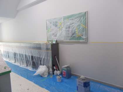 北階段と1年生、3年生の靴箱周辺の塗装が終わりました。本校管理作業員の山崎さんとともに、他校の管理作業員の方々にも作業していただきました。