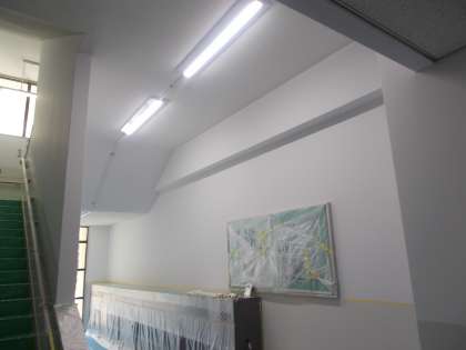 また、以前より1年生、3年生の靴箱前が暗くて、怪我などが心配でしたので、この夏にLEDの照明器具を取り付ける工事を行い、大変明るくなりました。