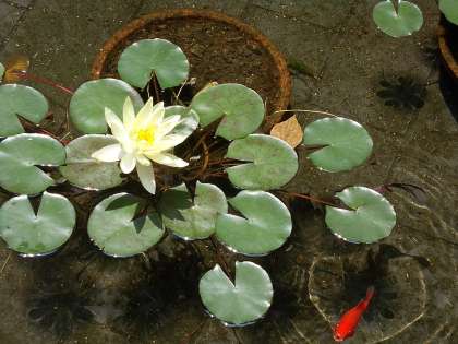 空梅雨でしょうか。。。?スイレンと金魚はご機嫌さんです。