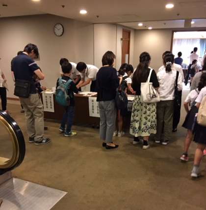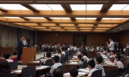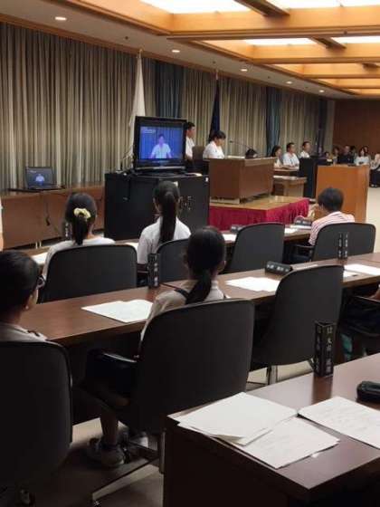 8月23日の「おおさか子ども市会」本番が、台風20号のため中止になったため、9月8日土曜日に収録会がありました。本校児童も2名参加し元気よく自己紹介をしました。最初に市会議長の角谷議員の挨拶と激励がありました。子ども議員達の話合った内容についての回答は、吉村市長のビデオによって流されていました。