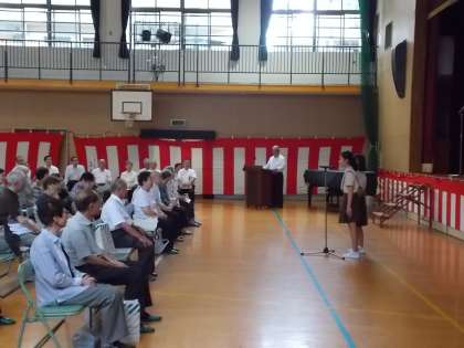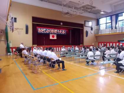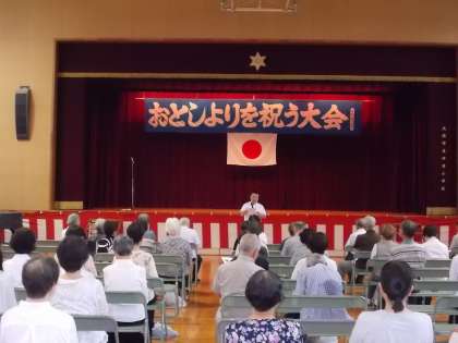 本校の講堂で、中津地域の「おとしよりを祝う大会」が行われました。おめでとうございます。雨が降る中でしたが、たくさんの方が参加しておられました。