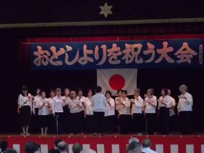 第2部では、「中津リバーサイドコーポコーラス同好会」のみなさんによるコーラス、「淀 なにわ会」のみなさんによる大正琴の演奏でのお祝いがありました。