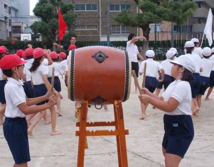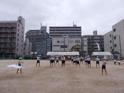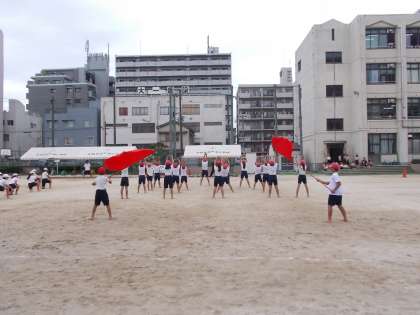 応援団の練習を運動場で行いました。運動会を盛り上げようという気持ちが伝わってくる態度でした。がんばって練習する姿にひきつけられ、多くの児童が練習の様子を見つめていました。
