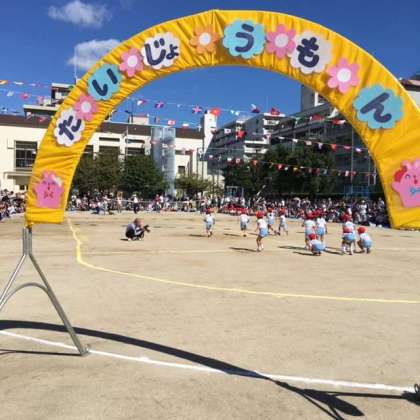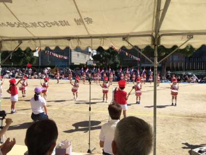 台風の影響で、今日まで延びた運動会でした。今日は、雲ひとつない快晴。中津小学校の広い運動場いっぱいに、園児達が力いっぱい演技、競技をしていました。家族の方もたくさん来られていて、楽しい一日を過ごされていました。