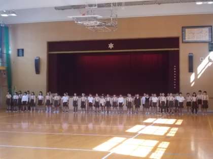音楽集会は8時30分から講堂で行います。練習を重ねた美しい歌声をぜひお聞きください。