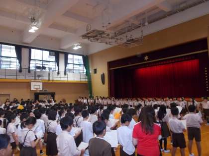 今日は4年生が担当の音楽集会でした。曲は「Great Power」でした。難しい曲でしたが、特に高音が美しかったです。練習の成果を発揮し、美しい歌声が響いていました。