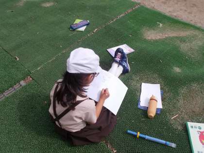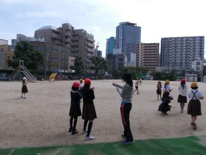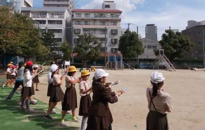空気でっぽうを使って「とじこめた空気のせいしつ」の学習をしました。押し棒を押す速さ、前玉と押し棒の距離を変えながら、前玉がとぶ様子を調べました。