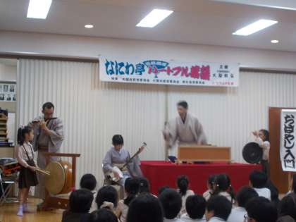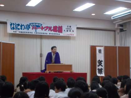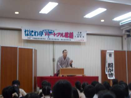 初めて生で落語を鑑賞する児童がほとんどでしたが、落語の歴史や演じ方、扇子の使い方、鑑賞の仕方など、丁寧に教えていただきながら鑑賞しました。楽しい小咄や落語に爆笑の連続でした。おはやしや、落語の体験コーナーもあり、楽しみながら鑑賞、学習することができました。