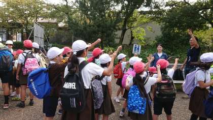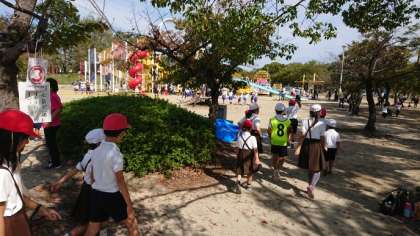 オリエンテーリングでは、各ポイントでゲームやクイズなどの活動をしています。