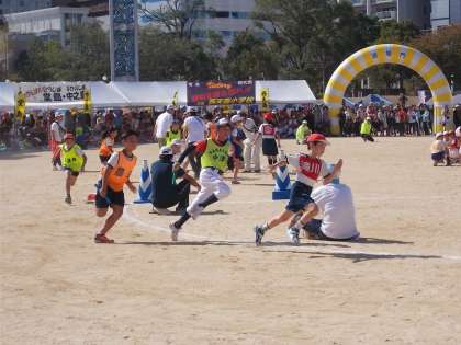 体育祭では、たくさんの声援のもと、みなさん力を発揮していました。その結果、小学生リレー、800mリレー王者決定戦でみごとに優勝しました。