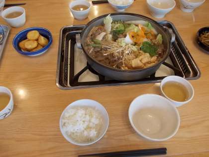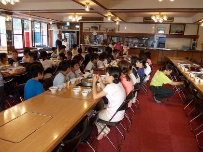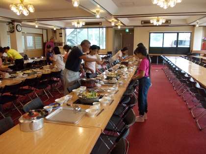 1日目夕食すき焼き。食事係は15分前に集まって準備します。
