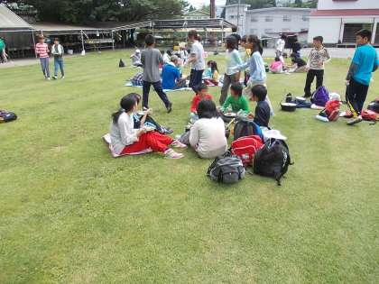 いただきます。みんなで協力して作ったカレーの味は格別!!