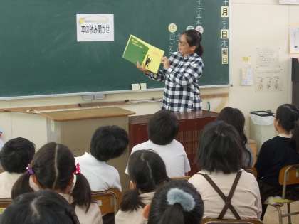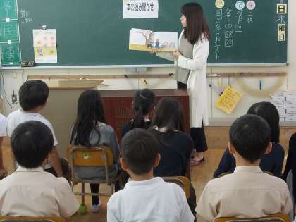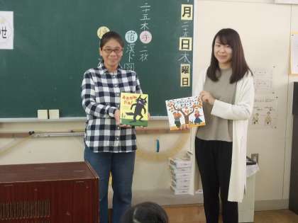 図書館支援ボランティア「お・ひ・さ・ま」の方に読み聞かせをしていただきました。今回、4年生では「おおかみだあ!」「さぼんじいさんの かきのき」を読んでいただきました。