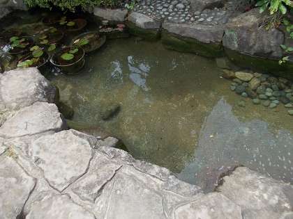 体育倉庫横の観察池の水をかえました。透明になっている様子がよくわかります。