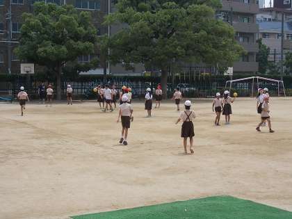 昨日の様子ですが、お楽しみ会でドッジボールをしている6年生です。