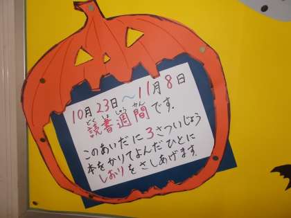 10月23日〜11月8日は読書週間です。読書の秋にふさわしく、図書室は多くの子どもたちが利用しています。読書週間では3冊本を読むと、図書委員会作成のしおりがプもらえます。読書週間を機に、たくさんの子どもたちが本に親しんでほしいです。