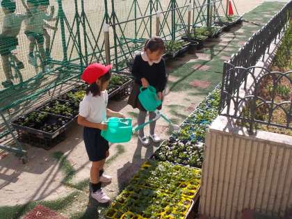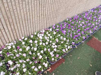 花いっぱいプロジェクトで育てているビオラとパンジーが先週末に次々と開花しました。3年生による毎日の水やりのおかげですね。