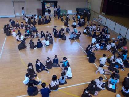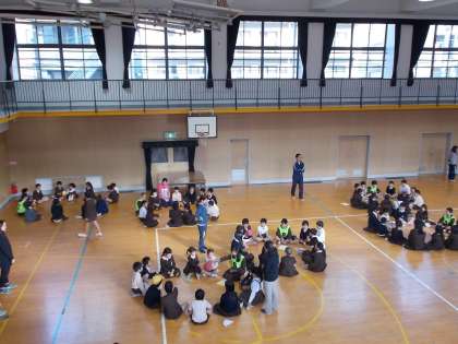 今回のなかよし集会は「ゴロピカドッスン」でした。「ゴロゴロ」の間にボールを回し、「ドッスン」の時にボールを持っている人がラッキーさんでした。ドキドキしながらのボール回し。「ドッスン」でラッキーさんが決まった時には大きな歓声があがっていました。