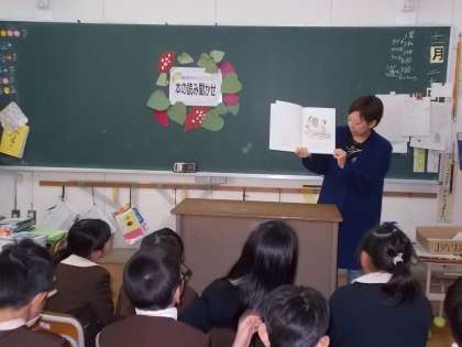 図書館支援ボランティア「お・ひ・さ・ま」のみなさんによる読み聞かせがありました。3年生では「ハリーのセーター」「だるまなんだ」を読んでいただきました。