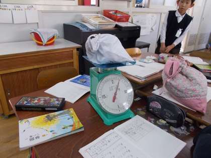 はかりを使って身の回りのいろいろな重さをはかりました。