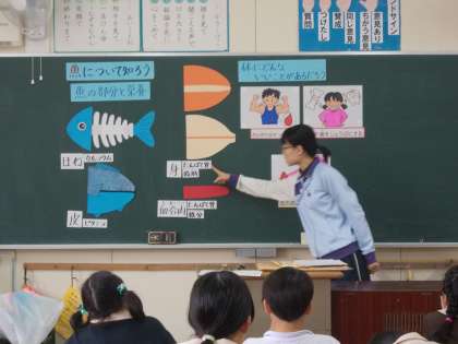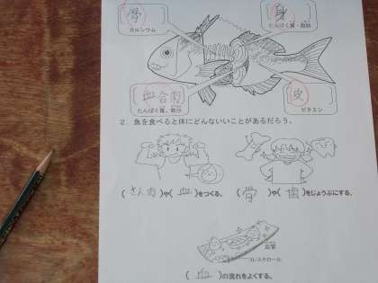 「魚についてしろう」の学習をしました。魚の部位や栄養について、たくさんのことを教えていただきました。魚ビンゴも大盛りあがりでした。魚の頭や骨もまるごと食べてたくさん栄養をとりましょう。