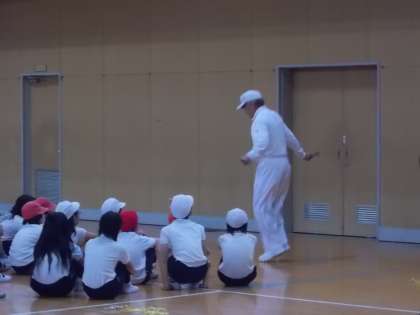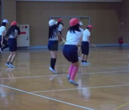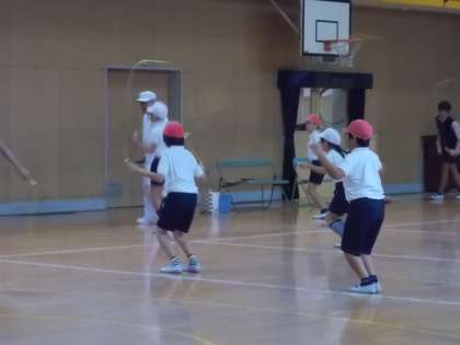 今日のなわとび出前授業は5年生でした。なわを回すときの手首、腕の使い方やなわの持ち方、跳び方や着地の注意点などを教わりました。どの技でも、ふわりと跳び、優しく着地することを教わり、その点に注意しながら練習を繰り返していました。短い時間ではありましたが、子どもたちはみるみるうちに上達していました。