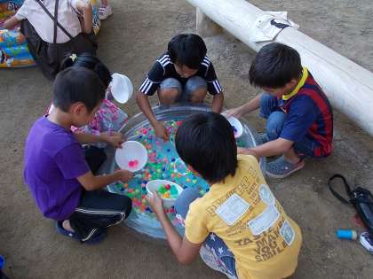 スーパーボールすくいです。全部破れているのに、あきらめきれずに頑張っている子が・・・