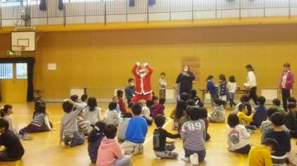 写真はビンゴ大会の様子です。サンタさんが登場し、盛り上がったなか行われました。