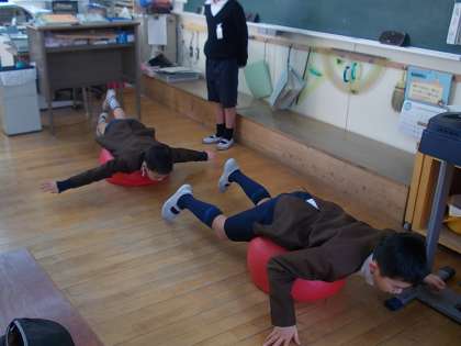 今週は今年度3回目の健康週間でした。今年度のテーマは姿勢です。今回の健康週間では、健康委員会の児童が各学級で、バランスボールを使った運動を紹介しました。体幹を鍛え、良い姿勢を保つために有効な運動です。体育の学習においても、順次取り入れています。学習中だけでなく、普段の生活から良い姿勢を意識して生活してほしいとほしいと思います。