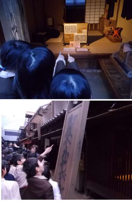 3年生が「大阪くらしの今昔館」へ社会見学に行きました。見学を通して、江戸時代の建物や薬屋、呉服屋、風呂屋などのお店の様子、食事の様子、家の中の様子などについて