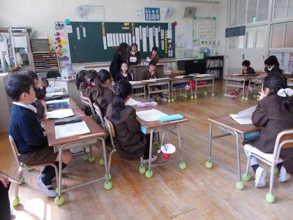 「『6年生ありがとう集会』をしよう」という議題で話合いをしました。6年生にありがとうの気持ちを伝えよう、集会のめあてにそって、集会の内容や、気持ちを伝える工夫について話し合いました。入学した時からお世話になっている6年生と過ごしたことを思い出し、感謝の気持ちを伝えようとたくさんの意見が出ました。自分たちだけでなく、6年生に楽しんでもらおう、喜んでもらおうという思いが伝わる話合いでした。
