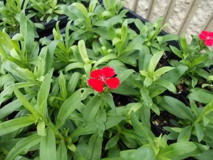 「花いっぱいプロジェクト」で育てているテルスター(四季咲き矮性ナデシコ)に花が付き始めてきました。