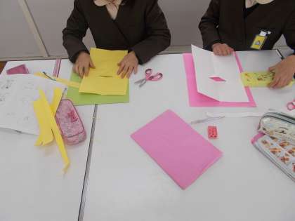 6年生が教職員への感謝の気持ちをこめたカードを作成しています。それぞれ担当の教職員にむけて、思い出を振り返りながら心をこめて作成しています。教職員は誰からどんなカードをもらえるのかな、と楽しみにしているようです。
