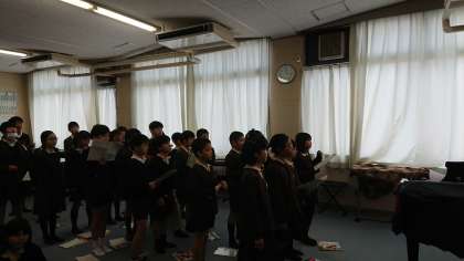 3月6日(水)に行われる6年生を送る会にむけて、6年生に送る歌の練習に取り組んでいます。練習の中では、録音した自分達の歌声を聞き、振り返っていました。めあてをもって練習に取り組んでいる様子でした。