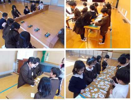 3年生が2年生を招待する3年生ワンダーランド。今回は3年1組が2年1組を招待して行いました。3年生で学習することをテーマに、5つのコーナーを話し合って決め準備を進め、今日をむかえました。コーナーは「地図記号に関するクイズ」「昆虫に関するクイズ」「習字体験」「コンパスを使った作図体験」「プロペラカー」の5つで、それぞれ2年生が楽しめるように工夫していました。2年生に優しく教えたり、手伝ったり、一緒に喜んだりと、ほっこりする雰囲気でした。