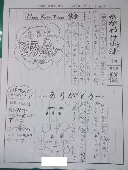 2月15日(金)に行うNKT集会にむけて、全校で歌の練習、各なかよし班では、地域の方へプレゼントするバッジの作成をしました。お世話になっている地域のみなさんへ感謝の気持ちをこめて取り組んでいます。バッジのデザインは、児童会で話し合って決めたものです。