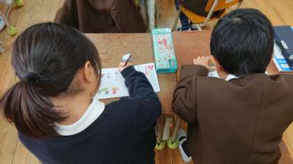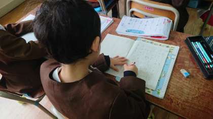 漢字の学習に取り組んでいました。筆順、とめやはらいなどに気をつけながら丁寧に書いていました。1年生では80個の漢字を学習します。画数の多い漢字やいろいろな読み方のある漢字に苦戦しながらも前向きに取り組んでいます。